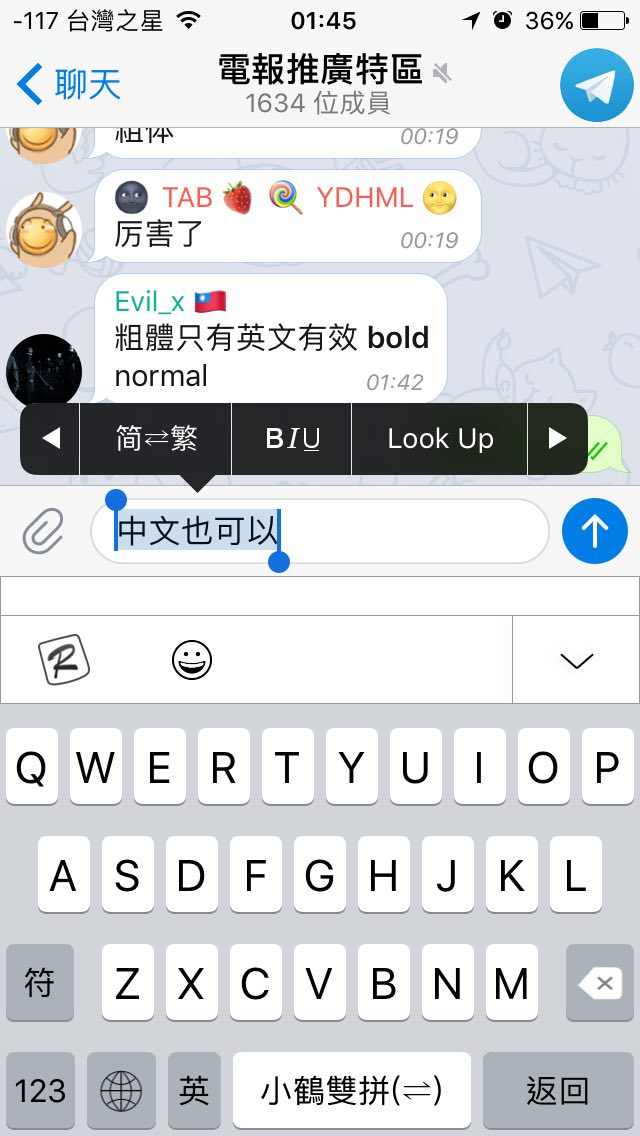 Shuan Wu says to Telegram 討論區