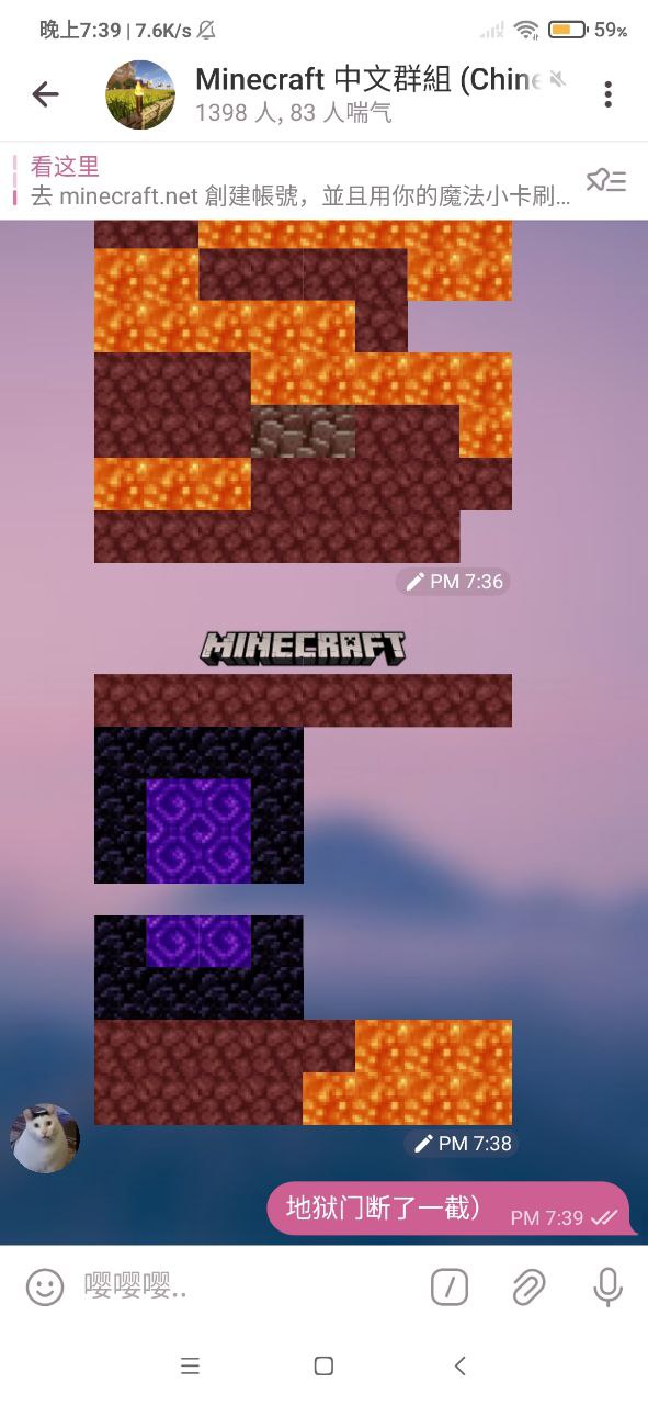 YukariMeow@tg says to Minecraft 中文群組 (Chinese only)